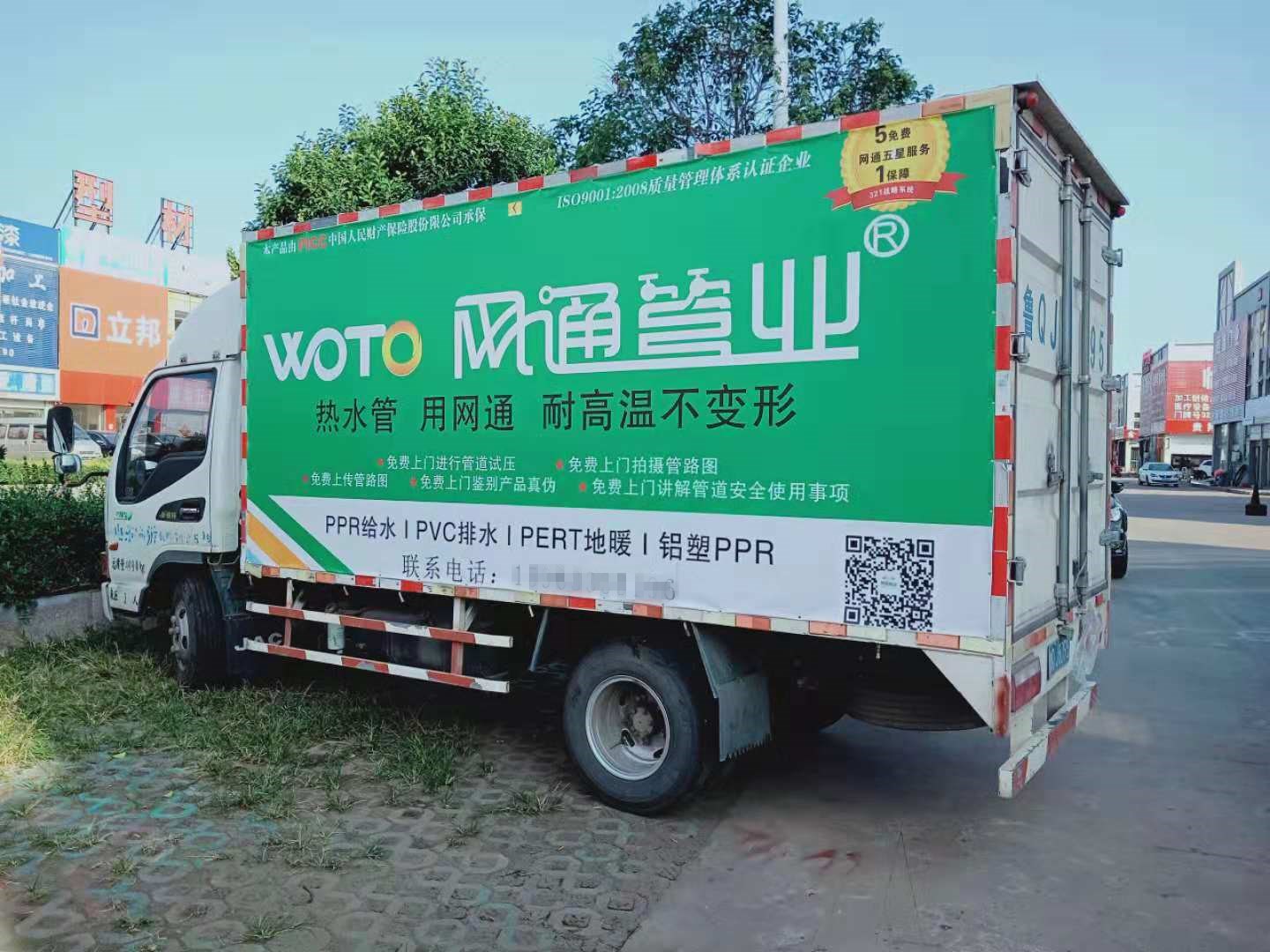 网通管业的代理政策非常棒!不仅报销门头广告设计制作费,还支持制作箱货车体广告。